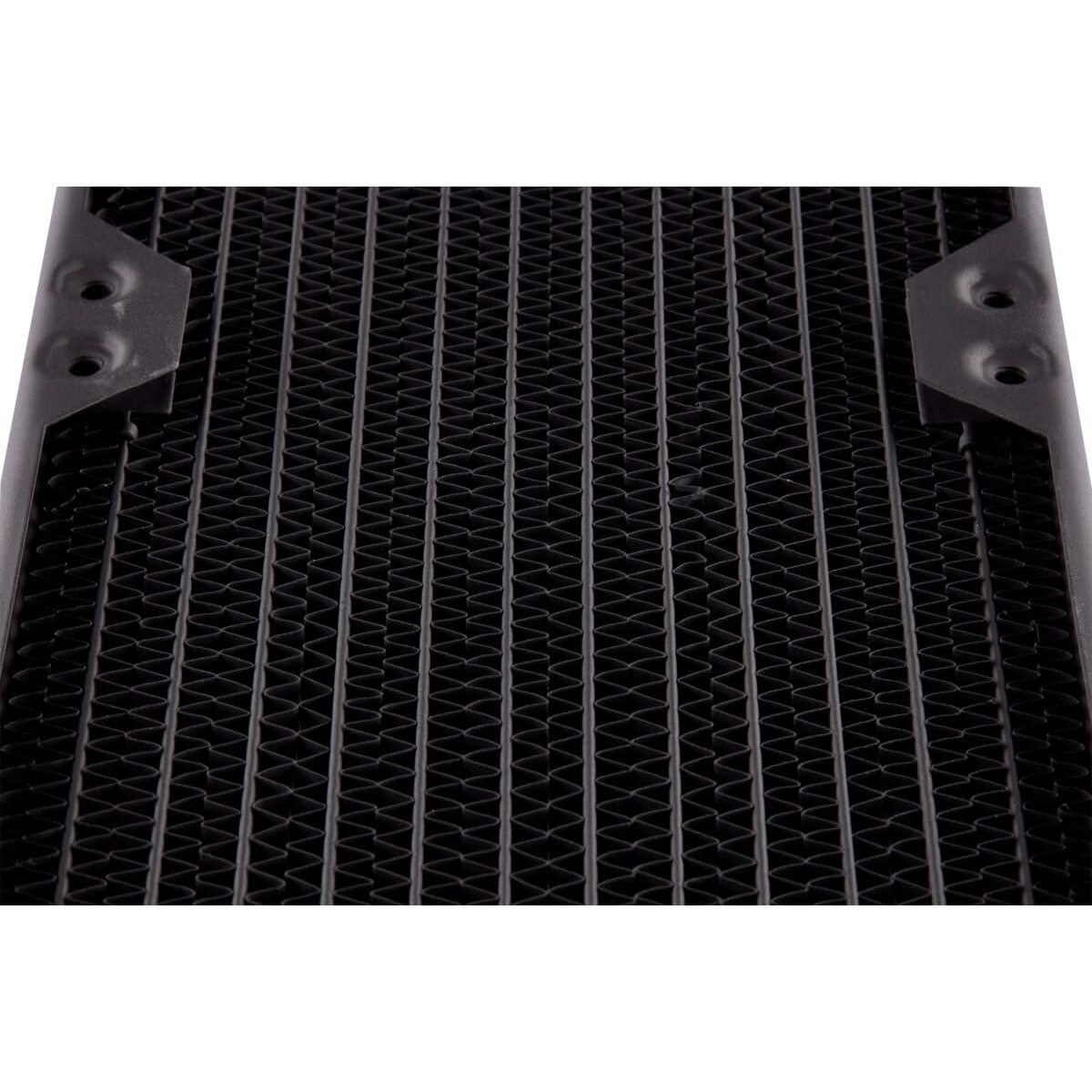The CORSAIR Hydro X Series XR7 480mm Water Cooling Radiator delivers extreme custom liquid cooling performance, with 54mm radiator thickness and 25 micron thin cooling fins maximizing heat dissipation surface area. A premium copper radiator core core is optimized for use alongside copper CPU and GPU water blocks, further increasing the thermal transfer rate. Intuitive extras such as Integrated Fan Screw Guides and built-in Screw Protection Plates make it easy to install fans, without worrying about damaging the radiator. Equipped with standard G1/4`` ports for universal compatibility and the surface area to tame even the highest-end hardware, the XR7 420mm radiator stands ready to cool even the most ambitious custom cooling loops and defeat the heat.